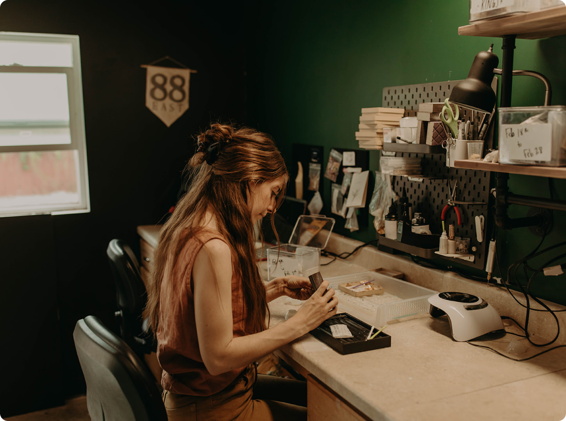 Smay and her team preserve your inclusions, order the setting from our metalsmith and then we can create the unique stone for you! This is a long and tedious process- our turn around time averages 3-5 months